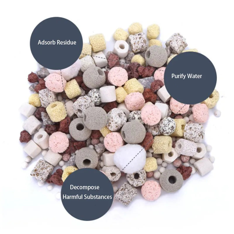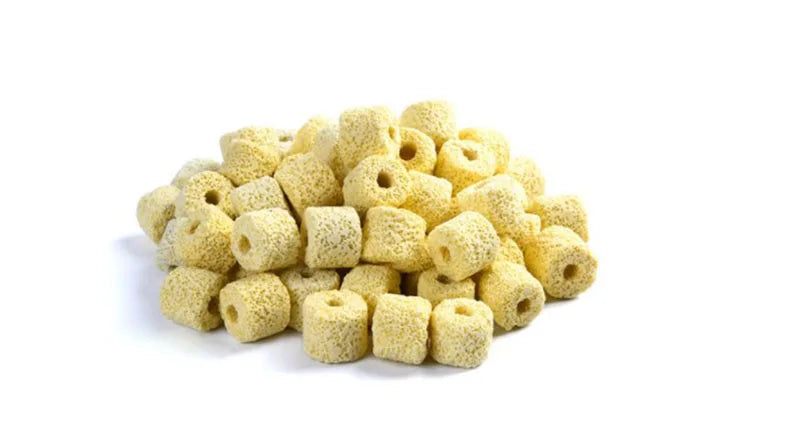Simply tuck them into a media chamber or mesh bag so water flows through them.