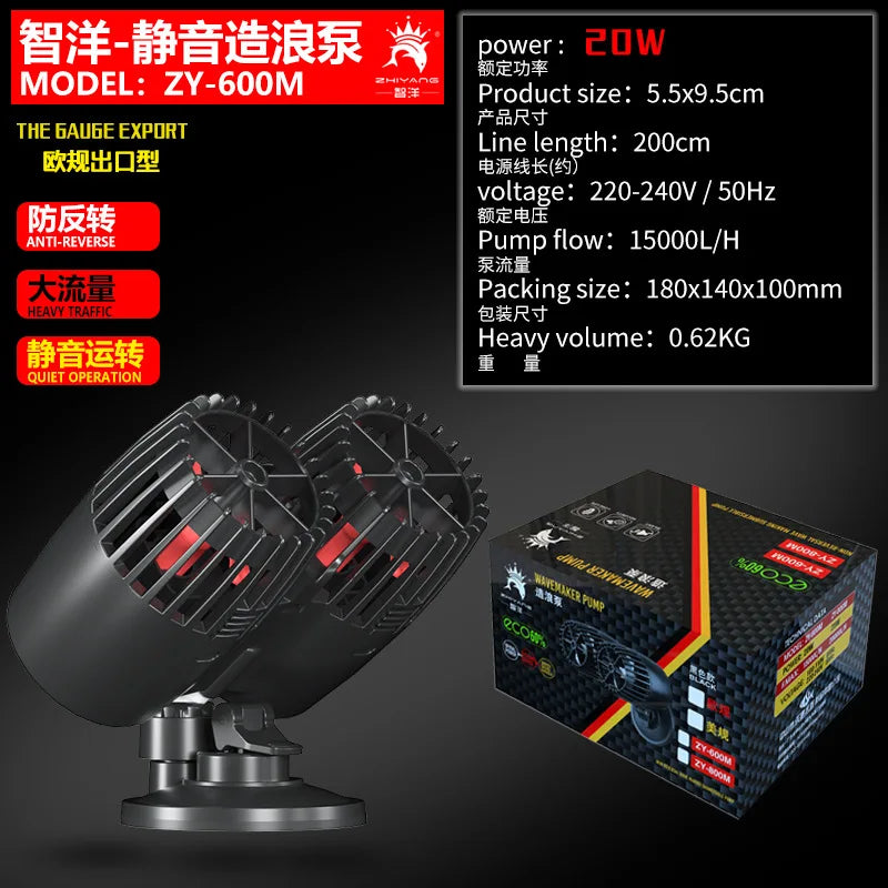The Zhiyang Adjustable Wavemaker Pump brings natural water movement to your aquarium with simple, quiet power. Its 360-degree rotation makes it easy to point the flow exactly where your tank needs it. Fish love the steady motion, and your aquarium stays cleaner and healthier with better oxygen exchange and fewer dead spots.