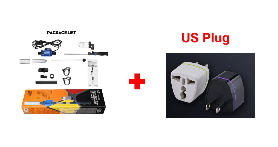 Attach the parts, plug it in, place the inlet in the tank, and press the button to start.